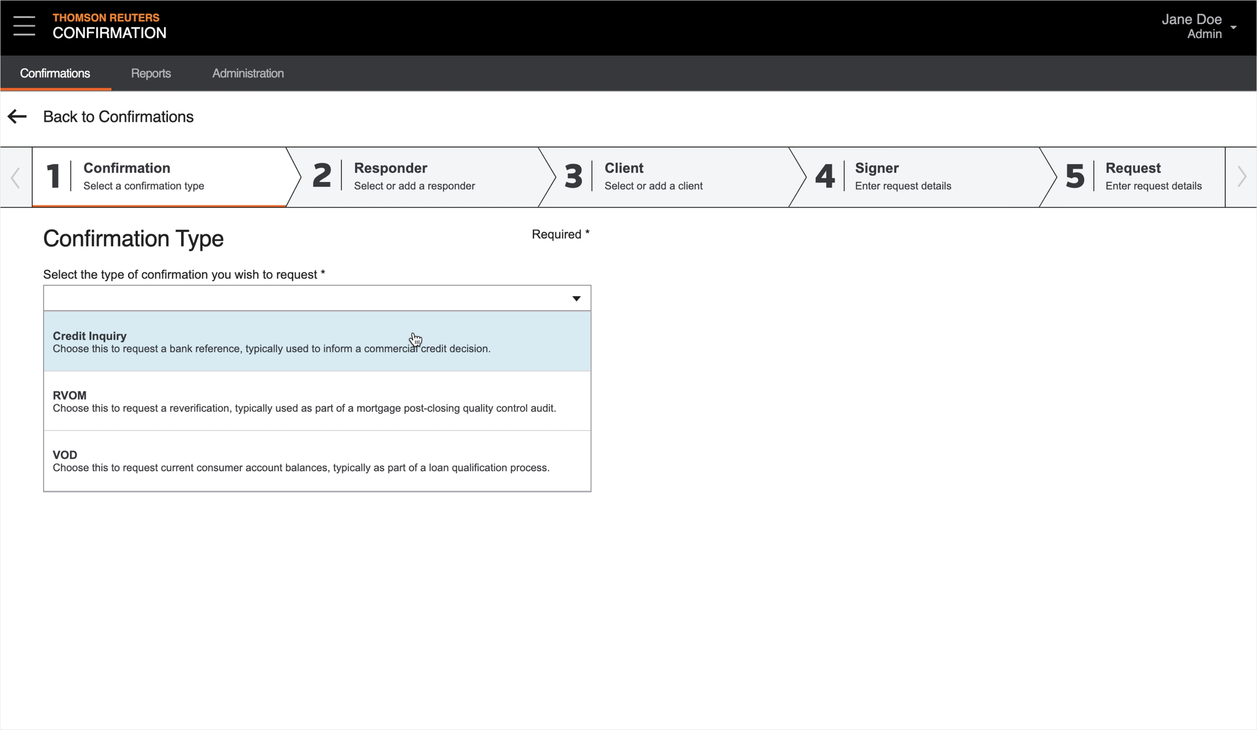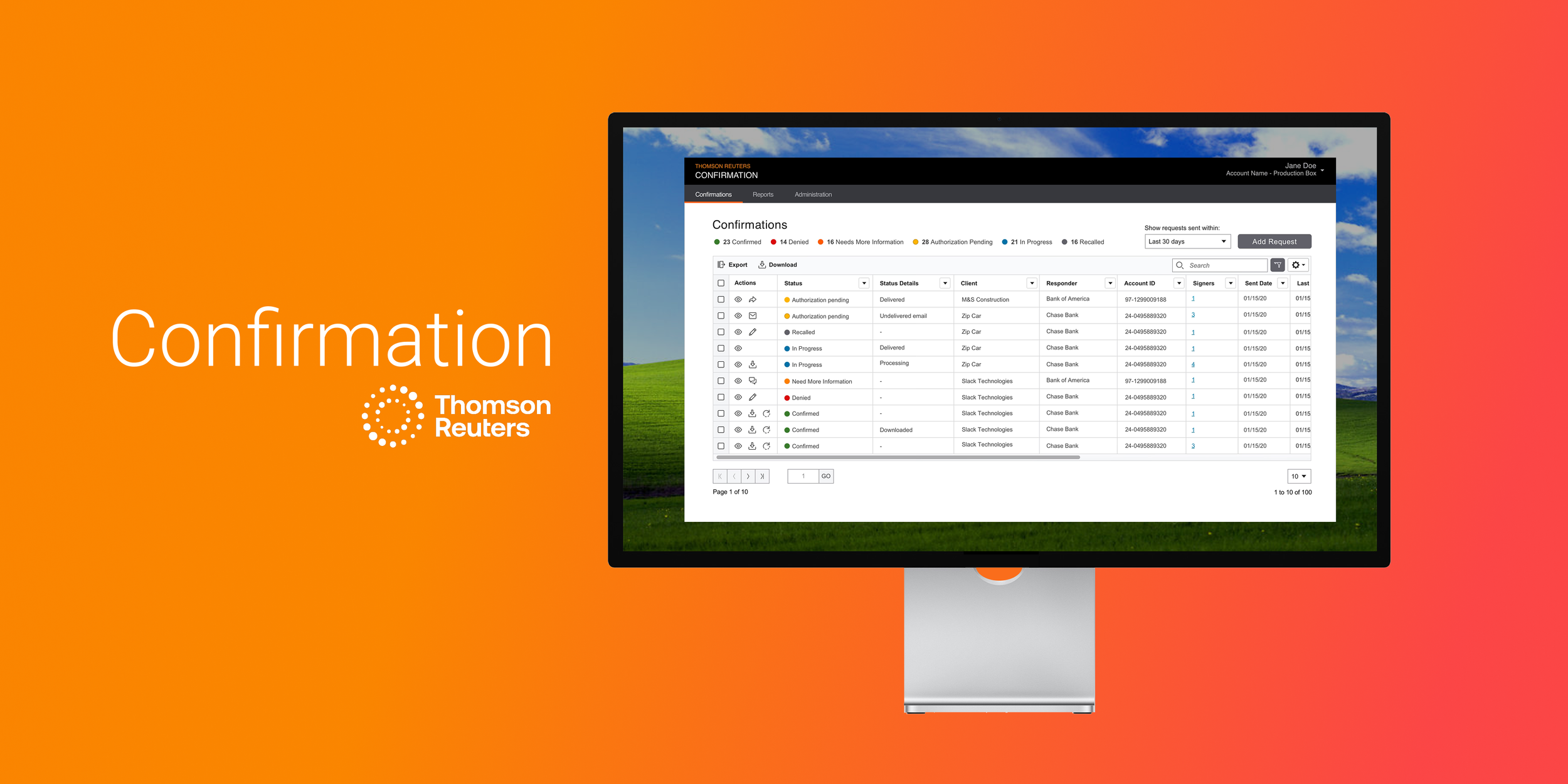 When I joined Thomson Reuters, my primary responsibility was to lead the redesign of the Confirmation application. The goal of this project was to modernize the application and develop a solution tailored to our customers' day-to-day workflows. Confirmation enables banks and financial institutions to streamline confirmation requests that would typically be handled manually through mail, email, or fax. By automating this process, Confirmation eliminates the tedious and time-consuming tasks involved, while also reducing the risk of fraud.